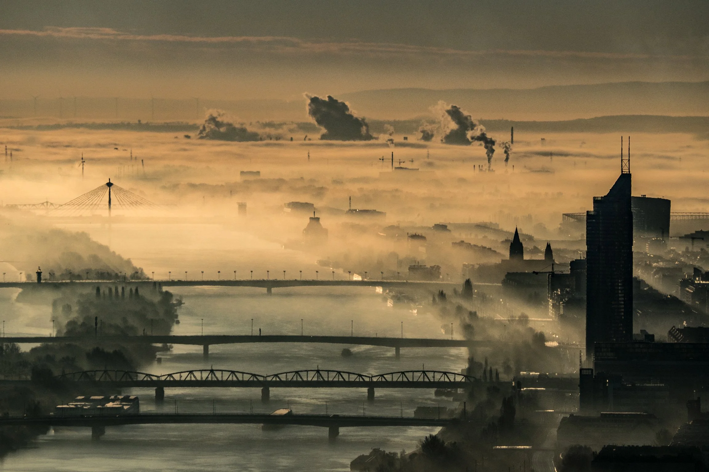Stadt Wien im Nebel.